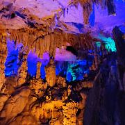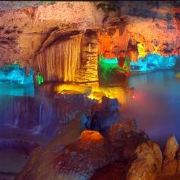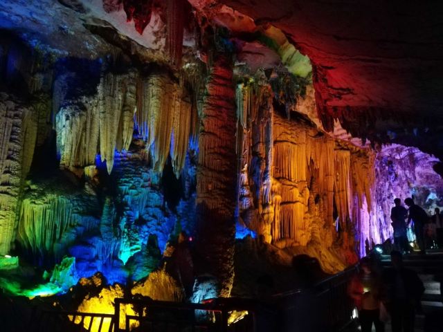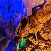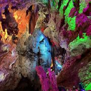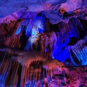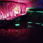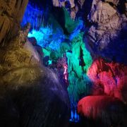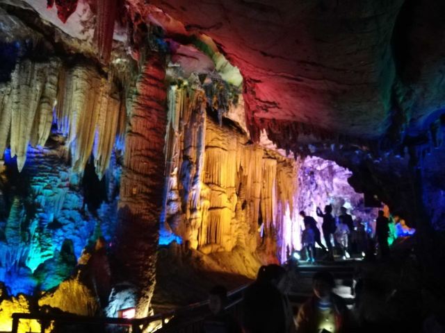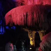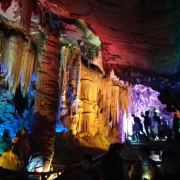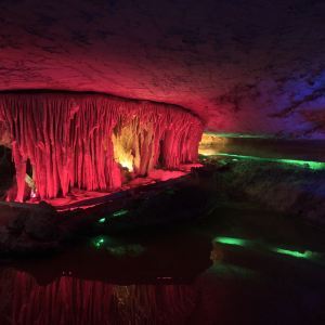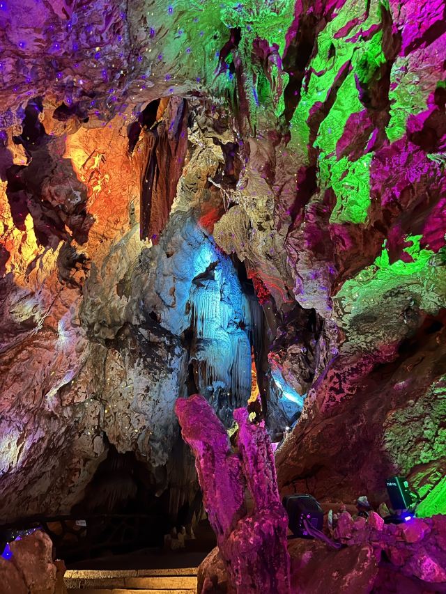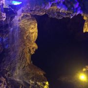 4分 满意洞里的景色确认值得一看,观看过程50分钟左右,全程有导游讲解,只是进洞前需要等一段时间才能一批批进去。不满意的是现场人员帮忙拍的照片,送的照片很小,没有留存的意义,大的需要配套水晶相框29元一张。问题是这些照片都打出来了,也不知道不要的照片是直接丢掉还是怎样处理。如果不买照片的话,最好不要让景区人员帮你牌照。
