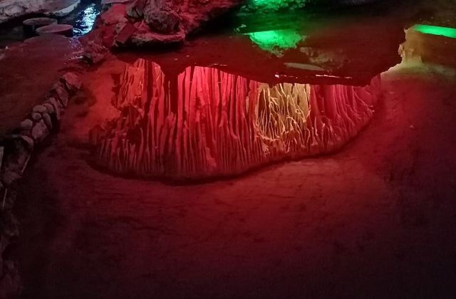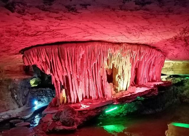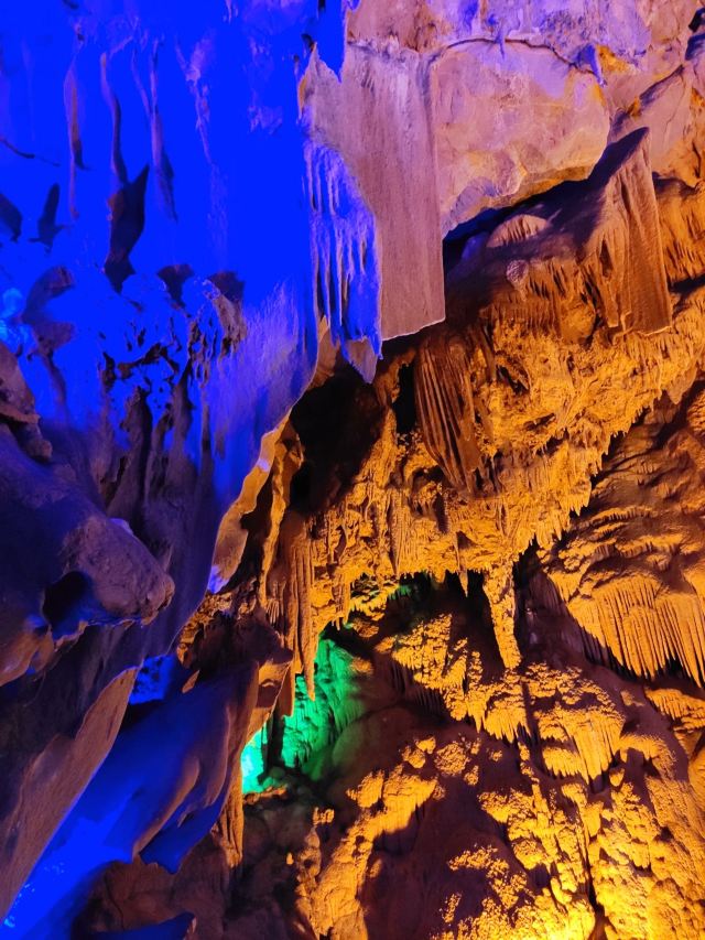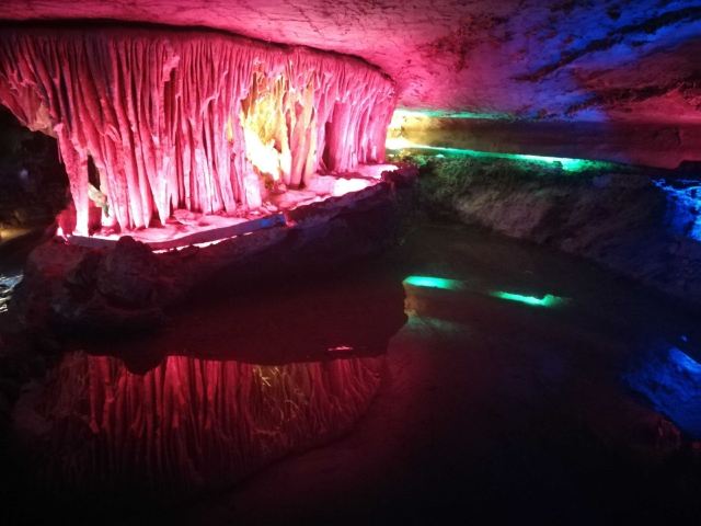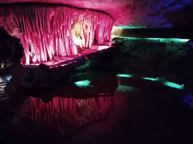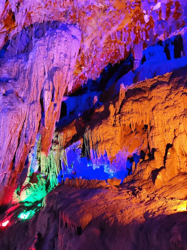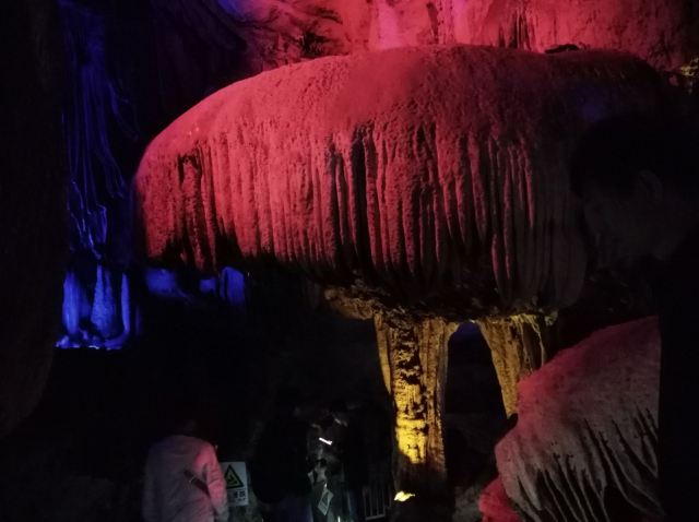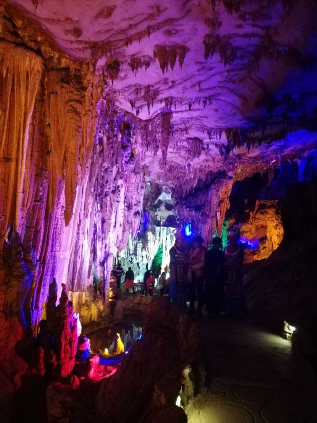 溶洞应该还是蛮大的,不过只开发了全长1000多米。边走边看,走完全程四五十分钟吧。要跟着解说员走,听他说再根据他说的再来看,不然自己看看不出点形象。洞里冬暖夏凉,夏天来玩啊!
