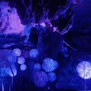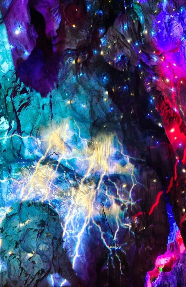 +沉浸式光影艺术效果。除了看钟乳石,还可以感受光影故事,故事共七幕17节,游客化身石一美族人,跟着紫云与贺川开启仙境试练之路,有互动环节,很有趣,适合带孩子体验。