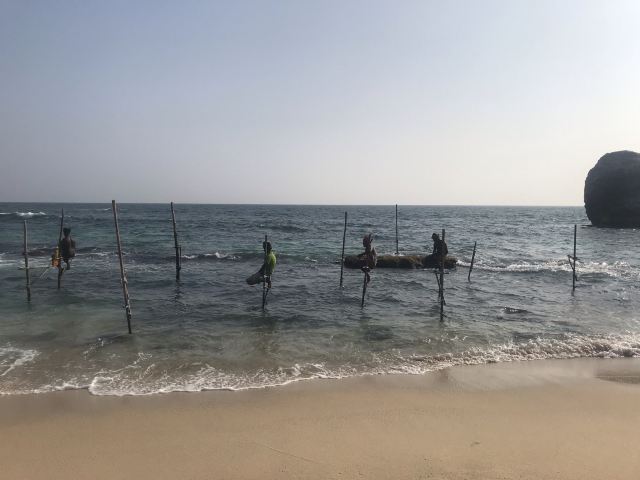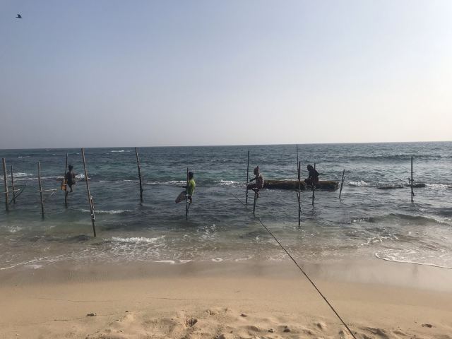 4分 满意就在加勒老城附近,有个摆拍的地方,沙滩很小一块,沙也不细,有四五个渔夫在竹竿上,做着钓鱼的姿势,游客也可以付500卢比爬上去拍照