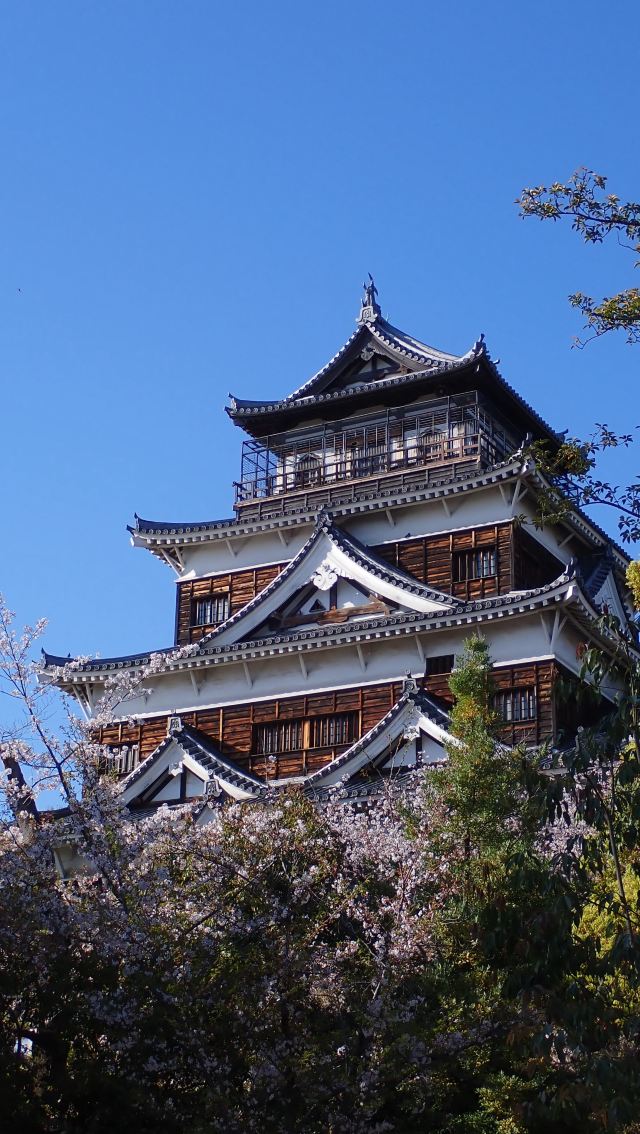 广岛城位于太田川的三角洲的平地上,因为它的外观像一只黑鲤鱼,又名"鲤城",由名将毛利辉元于1589年开始修建,历经10年建成。这座美丽的城堡在1945年的原子弹爆炸中被完全摧毁。现在的城堡是1958年仿照原样重建而成的,站在城顶可以俯瞰周围的城景 。广岛城除了展览历史的美术工艺品,也是一个著名的赏樱地,每到春季就会吸引许多赏樱的游客到访。