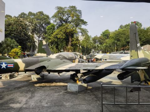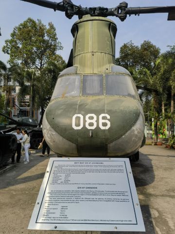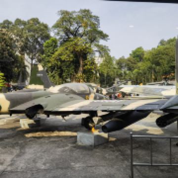 室外部分是展示越战期间美军使用的飞机、炮弹和各种毒气弹。还有一座二十世纪初运到越南的法国制造的断头台,这座断头台在1959-1960年之间被充分应用,看了令人不寒而栗。