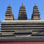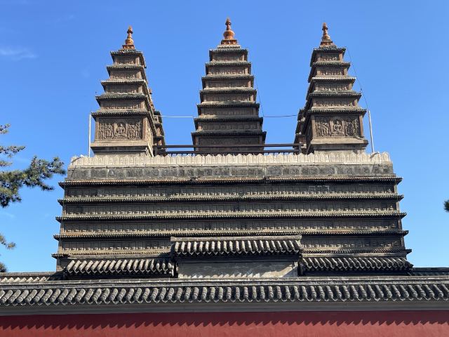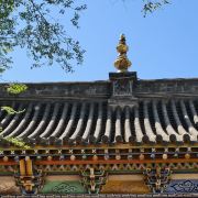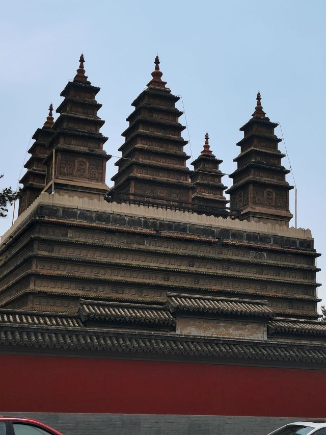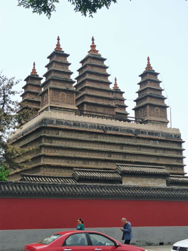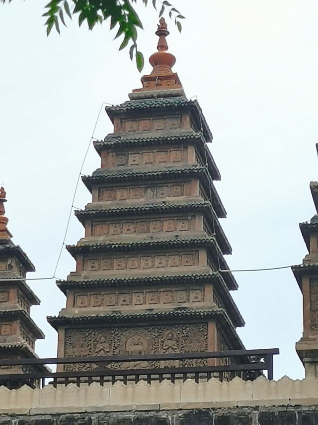 然后来到北边的院子,院子中间是慈灯寺的大殿,大殿背后便是舍利宝塔。这座舍利塔始建于清雍正年间,高约16米,塔身均以琉璃砖砌成。参观五塔寺时不光可以在外面观看,还可以上到塔座顶上,俯视全寺,视野不错。
