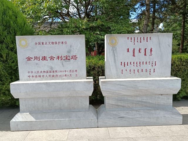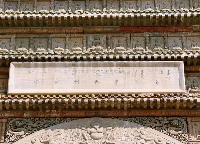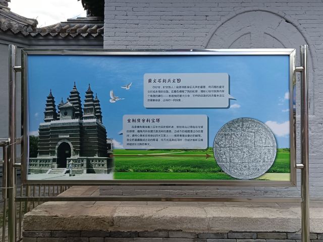 在舍利塔背后的北墙处有一座蒙文天文图石刻,天文图直径144.5厘米,画有二十八宿赤经位置的经线,还有五个同心圆。