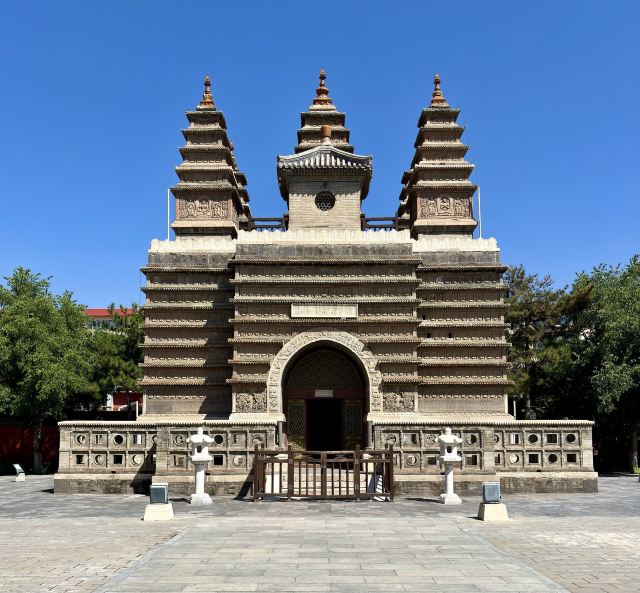 从五塔寺南门进入寺院,园内靠南处两边各有一座白色小塔,具有藏传佛教特色。正对面是三世佛殿,三世佛殿在建筑上既有汉族宫殿的特色,又有少数民族和藏传风范,这也是整个寺院建筑的大体风格。