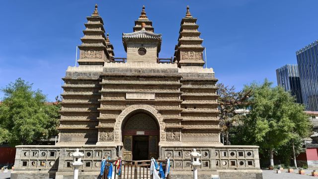 微信小程序五塔寺原名慈灯寺,位于呼和浩特旧城东南,五塔只是慈灯寺内的一座佛塔。曾经寺院建筑全都坍塌只剩下这座佛塔,因此才有后人得知此处有寺院,重建时便名为五塔寺。五塔寺是一座藏传佛教寺院,也是蒙古地区藏传佛教的发源地。