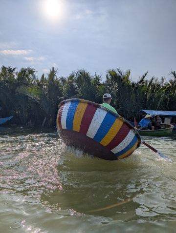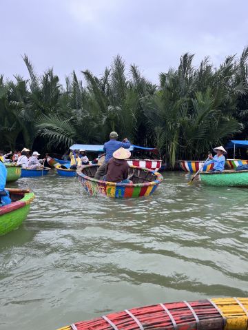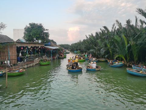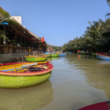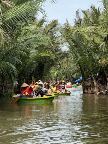 5分 超棒椰子船是越南比较有特色的项目,来会安古镇旅游刚好这边可以体验。会安那边有很多家店,这一家不在大路边在村子里面,感觉大部份都是做线上生意,价格比较透明,我去的时候人不多,店员轻车熟路核对我的购买凭证之后,就马上安排我上船了。我在会安古镇打摩托车过去单边10分钟&10块人民币左右。