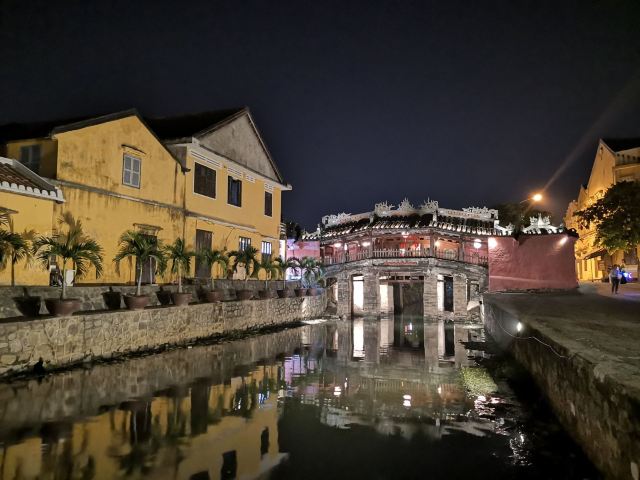 4分 满意来远桥,是会安重要的标志性建筑,来远桥的由来是日本和越南友好见证,这条桥是木结构,跨度不算很大,桥的一头是猴子雕像,另一头这是狗的雕像,中间有一间寺庙,不是很大,整个桥是带有顶的结构,挂着日式灯笼,很有日本的特色,单纯参观桥是免费的,进入寺庙需要付费,白天有人看守。