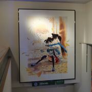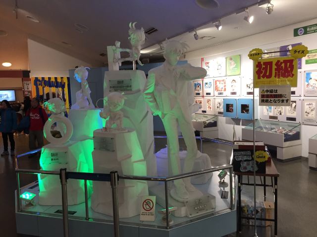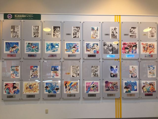因为来的时天色已晚,馆内人不多,参观的话总共分为两层,一楼是纪念馆和资料馆,前半部分主要展示各种原画稿和相关的资料,包括作者也就是青山刚昌本人的生平,其实很早就去东京了,这里只能算一个故乡而已,馆内有很多不同的限定版内容介绍,还能看到各国语言的漫画书