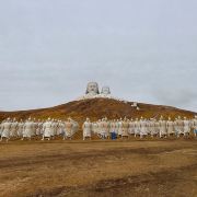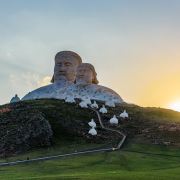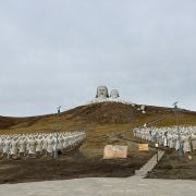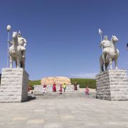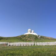 霍林郭勒市可汗山旅游景区位于观音山脚下,分为山门、苍狼之路、蒙元兵阵、帝王雕塑群四大部分,四周有草原林海景色,风光极美。在山的顶部修建有元太祖成吉思汗和元世祖忽必烈的巨型雕像,山下面有800多勇士雕塑,非常壮观。景区门口有停车场,周边有骑马、射箭,还有穿蒙古服照相,这些需另收费,可自己选择参加此项目或径直向景点走。