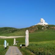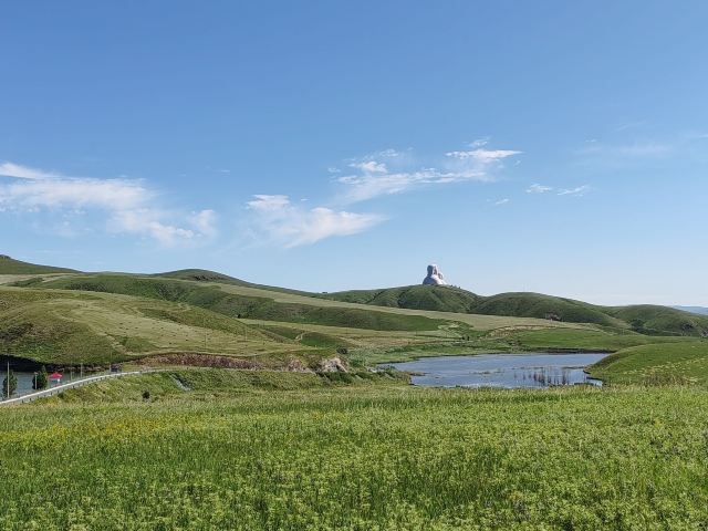 自然风光优美 :可汗山位于观音山脚下,四周是广袤的科尔沁草原,登上山顶,可俯瞰草原美景,远处蒙古包如珍珠散落,蓝天白云与草原、雕塑相互映衬,构成了一幅美丽的画卷。