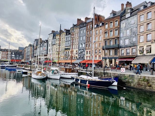 翁弗勒尔是个古老而美丽的诺曼底渔港,古色古香的狭窄街道,遍布全城的艺术画廊,生机勃勃的码头,倒影在水中的红砖建筑,都曾经是印象派画家钟情的港口风情,莫奈、雷诺阿、毕沙罗……他们曾不厌其烦地将这种平和安宁描绘在画布上,吸引着世界各地的人们驻足观赏。