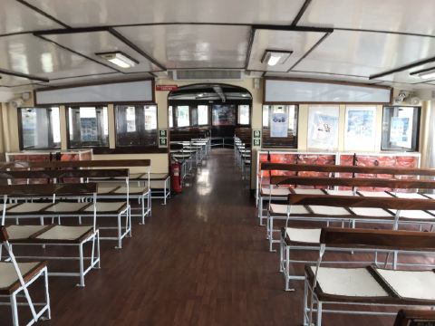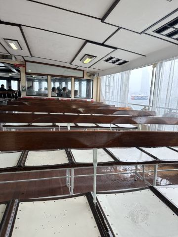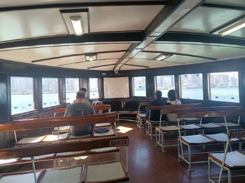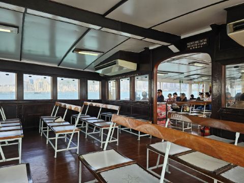 △ 直至今日,天星小轮依旧保持着复古造型,船舱内的木质长椅、铁质风扇,很有老香港的味道。