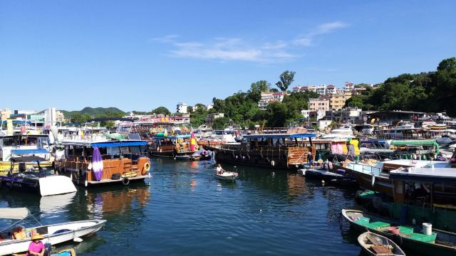 5分 超棒要去西贡的方法基本上要排除铁路才能到达,所以对于观光客来说可以靠搭乘巴士或渡轮(?)到西贡码头,我到的时候较少观光客,相对来说品质也比较好,周边的景色真的很美,如果有机会的话也可以参考渡轮公司推出的游岛方案,可以有不同的香港体验! 西贡市中心,如果去香港满推荐去这里,从旺角搭计程车过去西贡,车程不到一小时,车资大约140港币,其实很划算也很便宜,当然也可以搭乘港铁道钻石山站转乘公车,从C2出口左转,会见到很大的巴士站,往西贡的92号双层巴士站牌约在中间,车班约20分钟一班车。车资可刷八达通卡;也可以搭乘港铁彩虹车站,出站之后找 1A 的小公车,搭乘大众交通工具去的时间可能就要抓一个半小时,含等车以及转车的时间。 抵达西贡后,路边很多商船可以带妳出海逛逛,实地的看瑰丽的火山地貌,港口很多摊位,记得货比三家。如果想实地的去看到火山地形,那么就要转乘西贡绿色的计程车,前往东霸水库,车程大约40分钟,车资大约110港币上下。