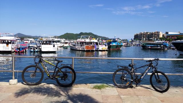 漫步沙滩或是骑单车四处逛逛,在碧波之上看日出日落,度过浪漫一天。到了晚上还有别的节目,可以租船出海夜钓墨鱼。