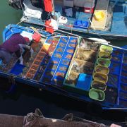 西贡的街道狭窄,依然保留着浓厚的昔日面貌,在海岸线旁市场街有一排排活鱼店,现捞现做,食材新鲜,令这里的海鲜大餐十分有名。巨大的五彩龙虾、螃蟹贝类、各色鱼类,都是上好的食材,也可以在当地市场自行选购,让店家加工。另外,还可以光顾渔民们用塑料桶建起的海上平台“鱼排”,这也是西贡一大特色。