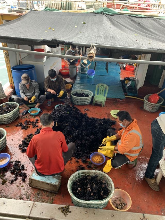 在西贡品尝海鲜,尽量选择露天,围坐在餐桌四周,大阳伞遮阳,吹着海风,远望碧海蓝天,游轮点点;身后则是海鲜餐馆的超大型玻璃鱼缸,仿佛海底世界。