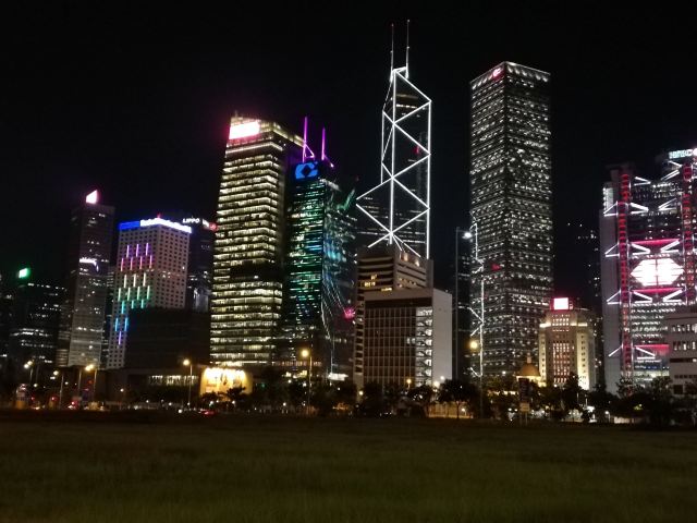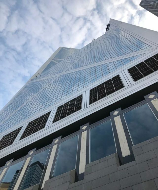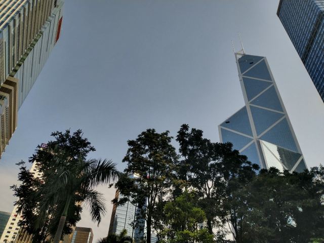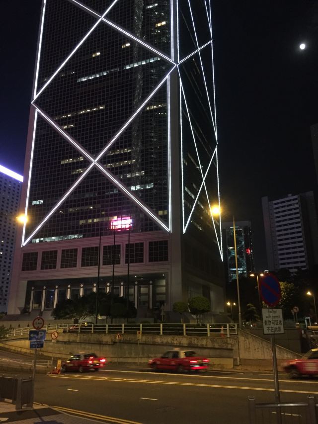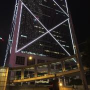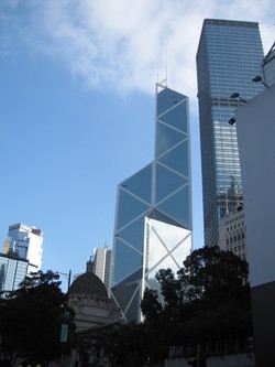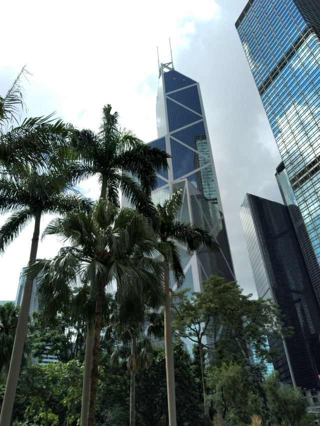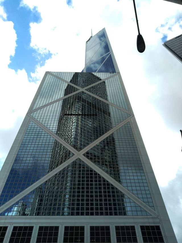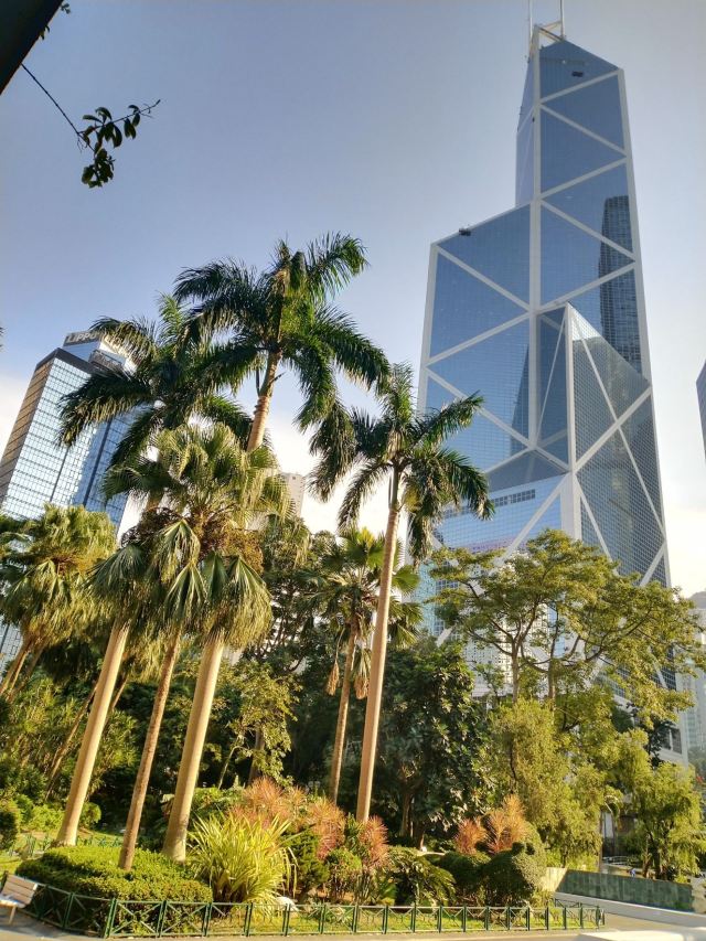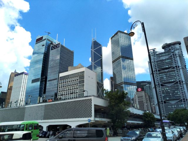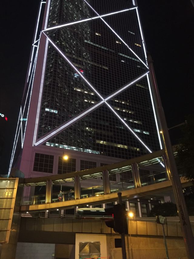 中银大厦是一栋由几组三角形组成的摩天大楼,它就是当地的标志性建筑之一,中国银行大厦,独特的造型寓意“节节高升”。