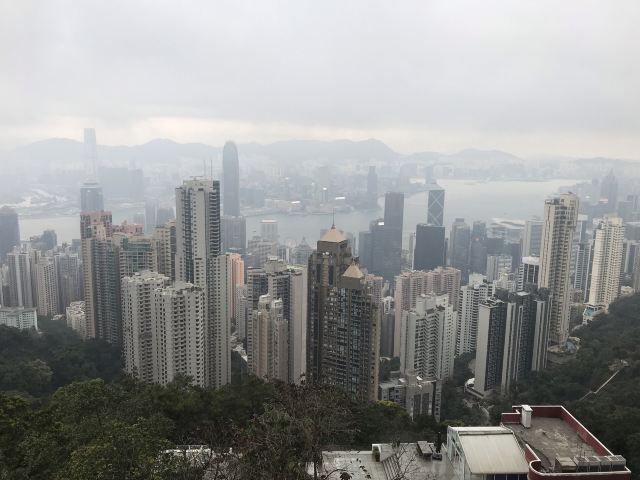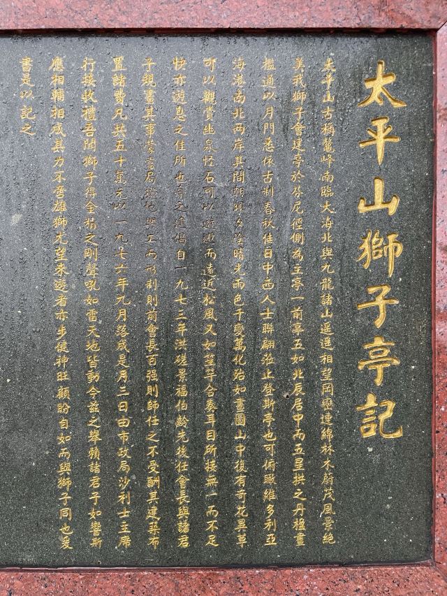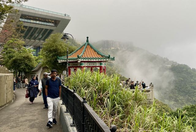 在太平山顶凌霄阁一侧,是观赏维多利亚港两岸及高楼大厦的尚佳位置之一,尤其夜间可遥望维港璀璨灯光。抵达山顶后,沿芬梨径便可到达狮子亭。