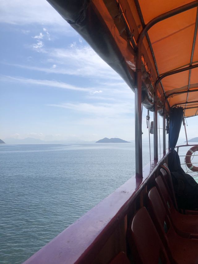 5分 超棒其实塔门岛距离马料水码头很近的,就是对面海转个弯,船在海上行走,可以说快,也可以说很慢,要开一个钟,回程逆风就更慢,海风吹多了会头痛,有防风衣更好,最好戴墨镜,阳光太刺眼,一定要防晒,不然晒到怀疑人生,中午的时候,差点中暑了,我是周三去的,人不多,只有一家小吃店开门,8:30的船,我坐11:10的回程,如果你拍照的话,时间不是很够,感觉我只走了三分之一,佷多地方都没去,想走完,就要走快点,下班船要到下午5:30分,留下遗憾,给机会自己下次去露营,下船之后,看清楚,不要随便掉垃圾,香港垃圾分类是很细化的,不是叼进垃圾桶就没事,放错了,写在垃圾桶里很明确,要罚款HKD1500.我就是放错了,阿伯一直看这我一脸茫然