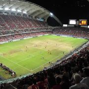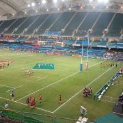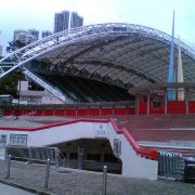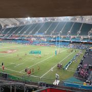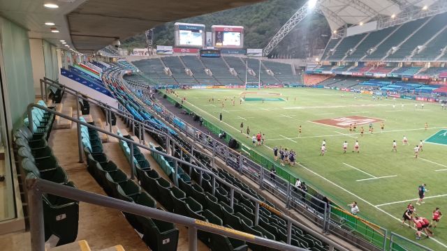 4分 满意香港大球场每年都会来几天,都是来看hongkong sevens的,球场地处铜锣湾南部,交通还是非常方便的。 每年比赛的时候基本都会封路,球场内基本上从早上到晚上八九点,老外们都会进行一天的狂欢,很多一连三天来的基本上都喝high了,去年还有直接睡在尿池里的。 球场分东西南北四个区,东西两边都是一些比较温和的球迷和包厢。看球体验不错的,南北区基本上都是疯狂的老外,喝上一天,到了下午基本上都是啤酒饮料内衣内裤乱飞了。。实在是high的不行,有机会感受一下挺好的。 今年香港队表现还是不错的,输给了火力强大的爱尔兰,冠军最后一如既往的还是斐泉水的。今年的比赛很棒,明天继续吧。除了体育事件外,香港的大球场也可以用来作很多不同的活动,其中一样就是布道会。在今年十二月初,一连数天的福音盛会就在这里举行,不同国际的人士都来参加,好不热闹。