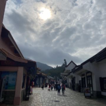 △ 位于香港大屿山的昂坪市集占地1.5公顷,毗邻昂坪360、天坛大佛及宝莲禅寺,市集内富有中国文化特色的建筑及园林设计与昂坪独有的大自然景致互相融合。提供多姿多采的消闲、餐饮及购物体验,是来香港自由行的必到景点。