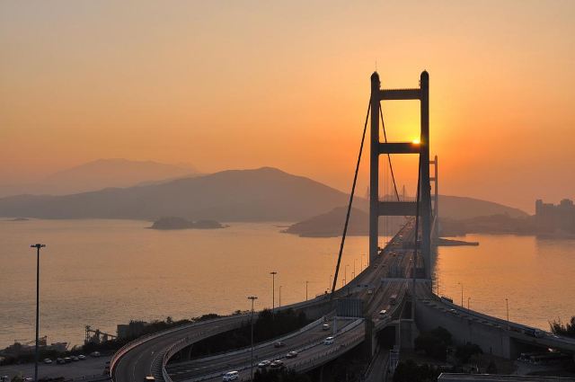 无论您乘坐汽车,巴士车还是火车进入香港/九龙中心区域,您一定会参观过这座桥。就像许多桥梁,汽车和巴士车是在上层甲板移动,火车是在下层甲板上移动。它是由英国政府建造的,将大屿山和机场连接到香港其它地方。如果这座桥没有建成,旧机场一定会很混乱,九龙的交通会一塌糊涂。如果你要特意看这座桥,青衣岛上有一个观景台。但我没有去参观这个偏僻的地方。事实上,我发现更好的观点,是来自深井那,碍著海滩的青山公路。反映一下,世界上几乎所有的桥梁,包括大陆那里的,都是来自英国或美国人早期的工程设计。
