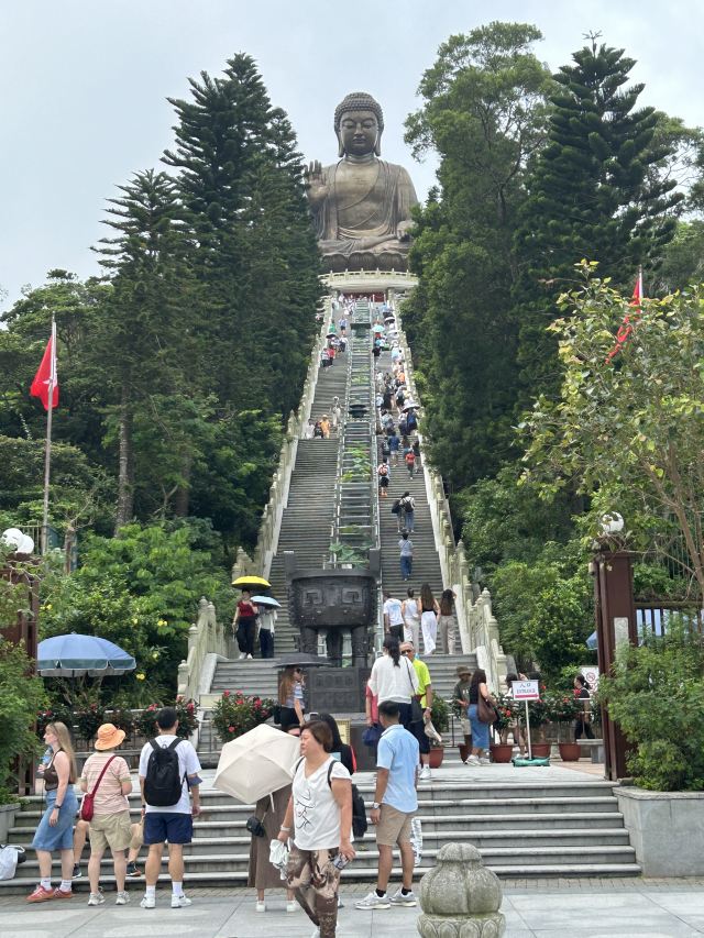 我们参观了宝莲寺和大佛,度过了充实的一天。您可以从东涌乘坐缆车到达这里,也可以从梅窝乘坐公共汽车到达,我更喜欢这种方式,因为它与香港中环的渡轮衔接得很好。宝莲寺坐落在昂坪地区,那里有一个地方叫做昂坪村,那里是传统的中国街区,但有很多现代的美食和纪念品商店,有着浓厚的市井气息,非常适合在这里散步。登上大约268个台阶,就能够看到大佛,如果您恐高,感到疲惫或天气太热,也可以选择从下面欣赏大佛,景色也很棒(参见照片)。如果您的身体状况很好,当然也可以爬上去。宝莲寺很安静,在这里散步很愉快。我们在这里参观完之后,还徒步到了石壁水塘(大约3个小时),非常棒的旅行。回程时,您可以乘搭巴士前往梅窝或东涌。