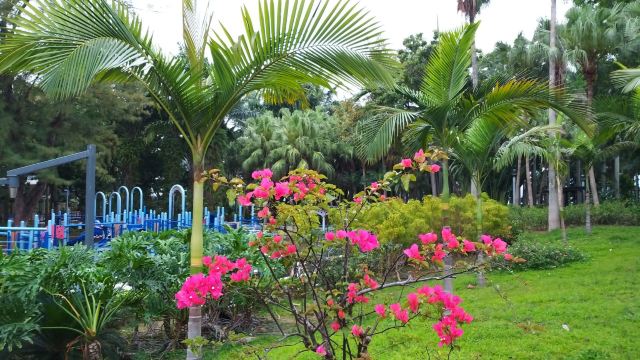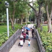 维多利亚公园内有维多利亚女王铜像,还有三个硬地足球场,走过足球场是中间草坪,草坪周围有一条长约600米的步道,路面柔软,适合悠闲地散步。公园内还有网球场以及草地滚球场,顺着网球场继续走会看到公园游泳池,穿过游泳区,会看到前面有4个篮球场。