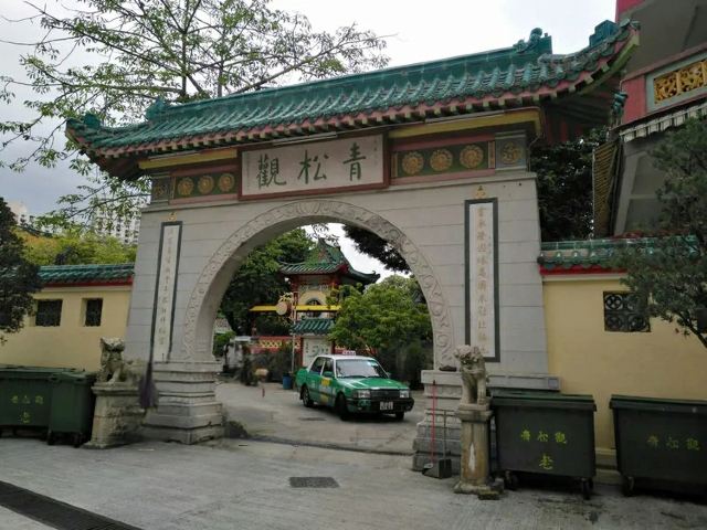 青松观在香港九龙西部屯门的青山麒麟围。由陆吟舫等人创立于1949年,属全真龙门派,道派溯源于广东广州至宝台。大殿建筑华丽精巧,前有拜亭与大殿相连。殿顶为两重卷棚式,覆以黄色琉璃瓦。殿内供奉主神为吕纯阳,两侧有王重阳和邱处机祖师塑像陪祀。神龛雕刻精美,饰品古朴典雅,配以繁花灯彩,别有岭南情趣。