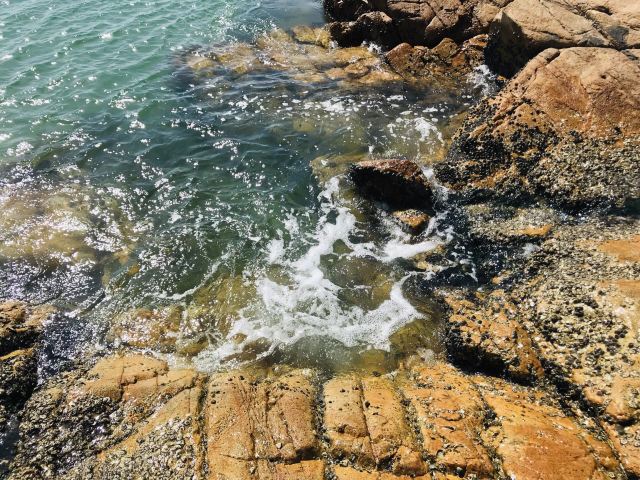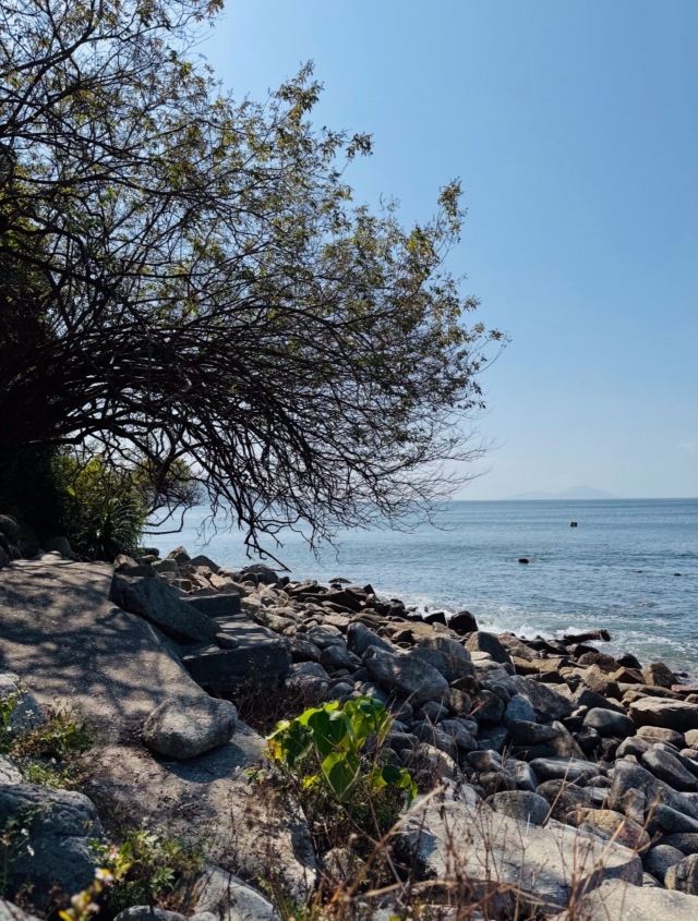 沿着路牌沿着大海一路前进,上坡下坡,经过芦须城泳滩、大围村、发电站、洪圣爷泳滩等,大太阳暴晒下,一路健步走走到累觉不爱。