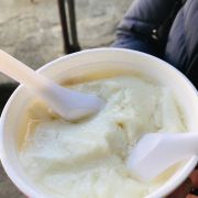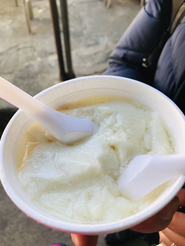 中途看到了网红豆花,里面有一股姜味,甜甜的,我们表示不合胃口。