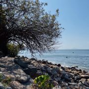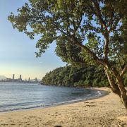 千辛万苦终于到了海滩边,海滩边离榕树湾码头近。我们晚到,所以沙滩边几乎没什么人,天气超好,沙滩也干净,玩起来很爽,小朋友们表示好开心。还看到很多活的海螺。饭就在海滩边解决,一家西餐厅,蛮贵的,一碗意大利面都是一百朝上,量也少。汉堡包也是一百多,但至少有扎实的肉啊。不划算。