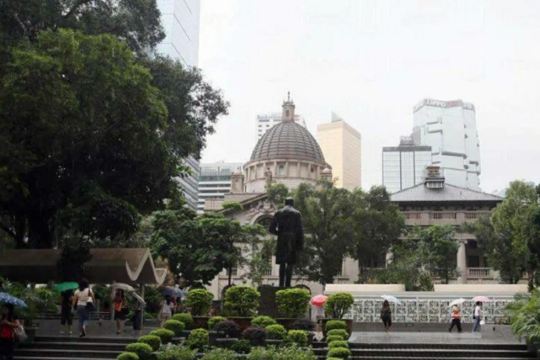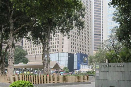 皇后像广场位于中环,是历史悠久的公众广场。皇后像广场四周被汇丰银行、渣打银行、中国银行、太子大厦、文华东方酒店等高楼大厦围绕着,是全港有名的广场。