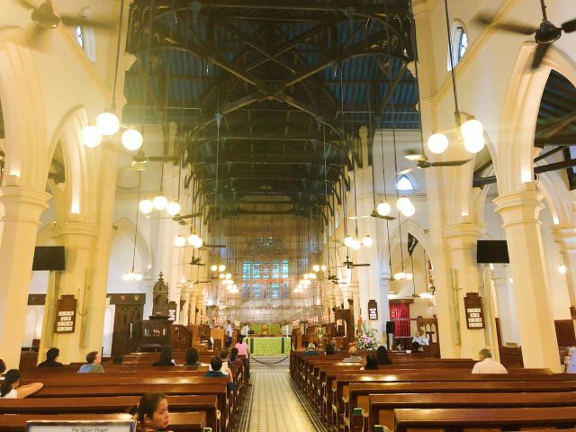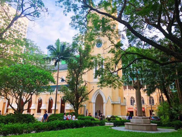 5分 超棒从花园道山顶下行至中环,便见到一座古老的西式教会建筑物,此敎堂建于1847年。揉合了13世纪英格兰式及哥德式建筑风格,被列为法定古迹。1941年香港沦陷时成为日本人的会所。 教堂曾遭受严重破坏,大部分内部所见到都是战后设计的。较有特色是其中一幅彩色玻璃窗可以见到当年香港渔夫的模样。从山顶缆车站步行,我想找到捷径回到置地广场的酒店。我偶然发现了这座古老的教堂。显然,它是香港的英国圣公会教堂的总部。我很激动,因为我本身是英国圣公会成员。看着教堂,我看到它是用哥特复兴主义风格建造的。它是建于1849年,远远早于新加坡的圣安德烈大教堂或吉隆坡的圣玛丽大教堂。不幸的是,教堂四面被较高的建筑物包围了。还有,与新加坡的英国圣公会教堂总部相比,教堂的花园和面积比较小。无论如何,对我来说,在教堂里走走,欣赏它 - 真是太棒了。