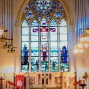从座堂西门可进入教堂,内部装饰华丽典雅,进门处就是洗礼盆,地面上是一幅三位一体马赛克嵌画,地板上还装饰有各色花纹。仔细查看,十字架下画着一只苍鹰,这是圣约翰的标志,以表明教堂的身份。教堂的每一扇窗户都装饰着美轮美奂的彩色玻璃,上面的画面是一个个人物和故事,室外的光线透过琉璃玻璃映照出色彩,令人宁静。