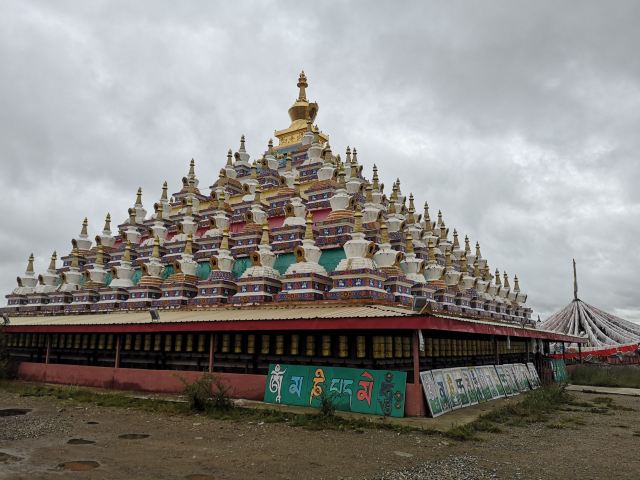 3分 不错瓦切塔林!一直在建设中!各种佛塔,经幡飞扬!去到里面参观,每个人的心态和眼界不一样!出来的感官也不一样!十世班禅来过讲经摸顶赐福!当地人觉得非常神圣的地方!门票和讲解员都很优惠!只是在出门口的板房(班禅摸顶赐福坐过的地方),有弟子跟你说给家人诵经祈福,点酥油灯,说是自愿参加,不知情者会被那种气氛所影响,给出大小不一的捐赠。当然聪明人会离开讲解员,自己一个人四处溜达一圈,自己出去了!我的心态是,跟藏族人比对于佛祖的虔诚和奉献,那是不值一提的!藏人一般会把家庭大部分收入捐建寺庙!就当是给寺院建设做一点点添砖加瓦的事!有舍才有得!这样你就不会觉得有种上当受骗的感觉啦![呲牙][呲牙][呲牙]