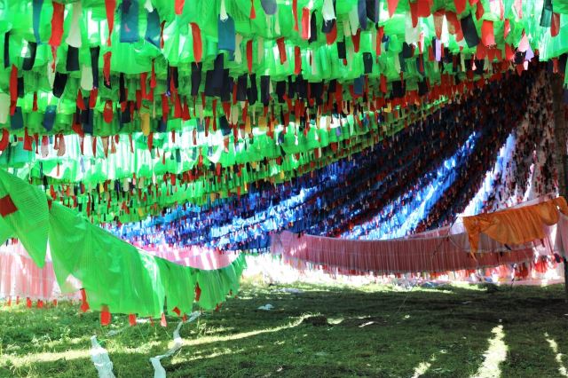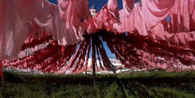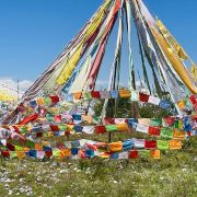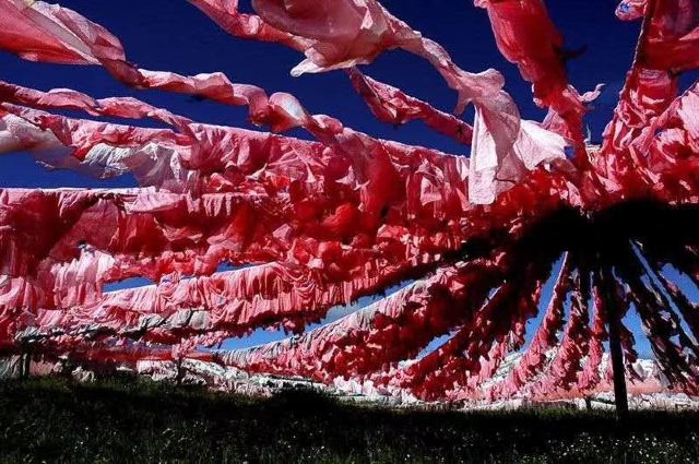 瓦切经幡群位于四川省红原县瓦切乡。瓦切塔林藏语意为“大帐篷”,塔林周围是一片连绵的经幡,甚为壮观。对于摄影爱好者来说,成排的白塔、连片的经幡是非常好的题材,是不可错过的景点之一。
