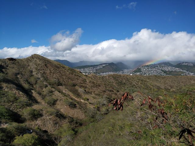 爬山每当累了需要休息的时候,其实都是很好的观景点,视野非常开阔。在夏威夷看到的绿色蓝色都是饱和度极高的,树木也都很壮实,可见阳光充足的力量啊。