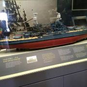 展览厅约半个篮球场那么大,进口处有一艘1:96的亚利桑那号战列舰的复原模型和现在亚利桑那号在水下的遗骸及纪念馆模型。展室中还展示了亚利桑那号留下来的珍贵物品,如亚利桑那号下水的舰牌、亚利桑那号水兵美式足球队的队服及奖杯等等,这些都是在亚利桑那号沉没后打捞上来的。