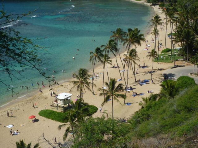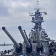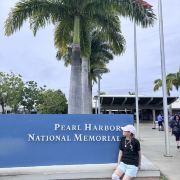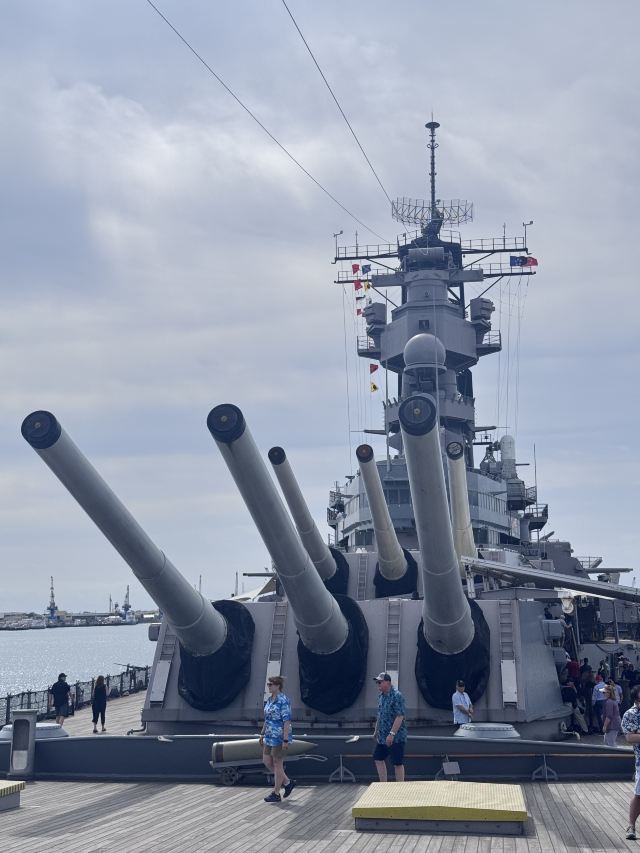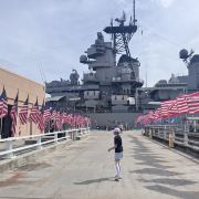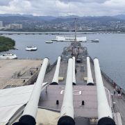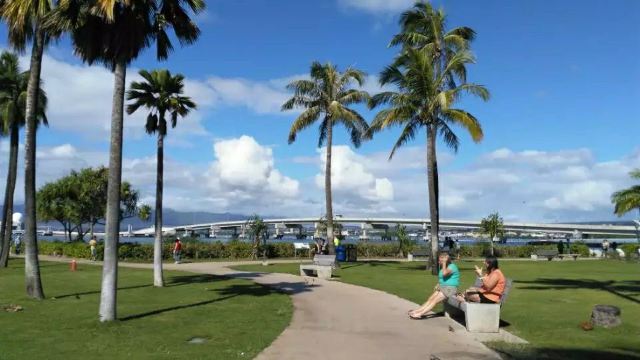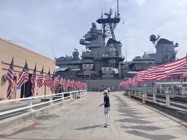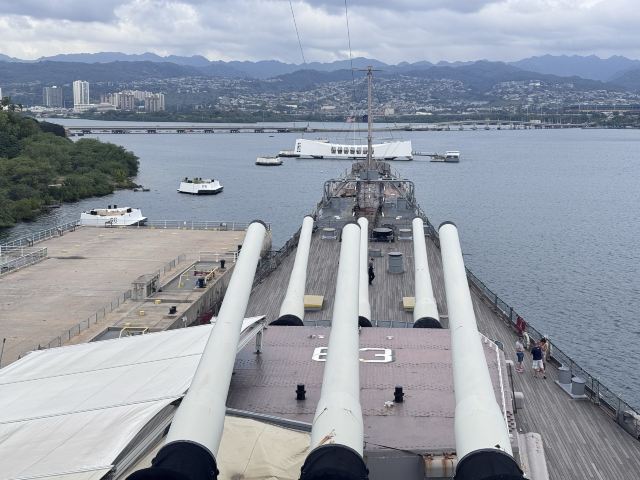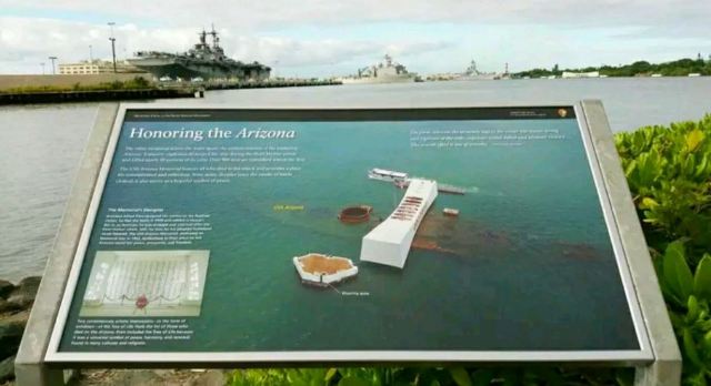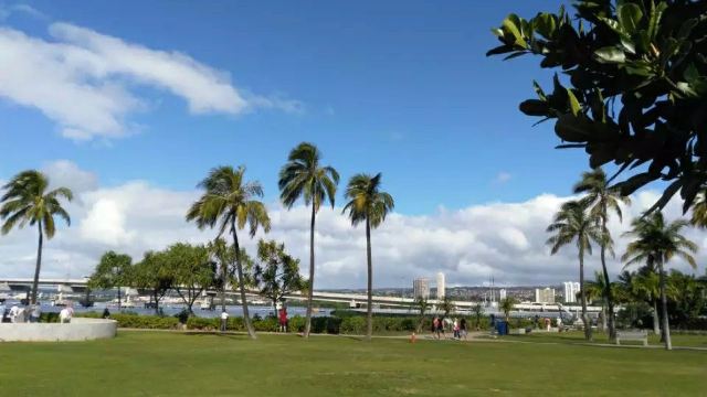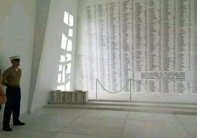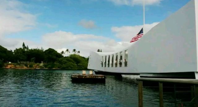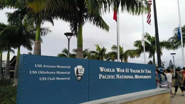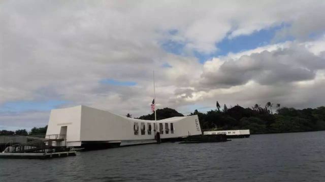 微信小程序珍珠港位于夏威夷欧胡岛的西南部,是夏威夷较大的自然海港,三面环山,一面临海。然而,让这里闻名遐迩的还是二战期间,日本海军对美国太平洋舰队的一次闻名的偷袭战——珍珠港事件。进入珍珠港区先参观珍珠港国家纪念馆,馆内图文并茂客观地展示发生在1941年12月7日震惊世界的珍珠港事件,有美日双方参战的舰艇、飞机、人员及伤亡情况的资料。从历史陈列室出来后,前往码头乘船去纪念馆,前往漂浮在海中的亚利桑那纪念馆。需注意的是,由于周围是美国海军基地,开船后不能起立,不能喧哗,禁止拍照。几分钟后便来到纪念馆,这是一座鞍桥型白色船型建筑物,拱形顶部呈镂空状,它像骑马一样横跨在亚利桑那战列舰的遗骸上,与沉船形成十字架造型,寓意对死者的追悼。进入馆内,墙两侧镌刻着锦绣的花环,地上还插着美国的州旗,里面大理石墙上刻着牺牲的1000多名船员的名字,通道两侧向下俯看,可以见到沉船巨大的烟囱还有锈迹斑驳的桅杆,海面上还会不时飘起油花。不远处还有内华达号、俄克拉荷马号、加利福尼亚号的沉船标志。密苏里号战舰纪念馆从军舰左前舷登上军舰,参观各个房间、设备,还有船尾的飞机甲板。在军舰一个房间内见到一个玻璃柜,里面放着很多铭牌,是在此舰作战牺牲的军人身份的证明。登到较高处就是舰长作战指挥室和舵手操控室。