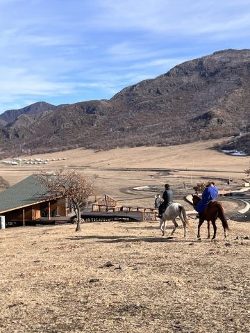 赛日沟深处建有广场。广场东侧有道垂直挺立的山崖,不仅有壮丽的外观,更以其底部的两个神秘石洞而闻名。它们贯穿着整个山体,有五百多米长。两洞间距不足十米,平行并进,有若干横洞连通两洞。走进去,地面凹凸崎岖,还能听到滴水声,阴森怪异,颇有探秘冒险之感。冬天自然形成的冰柱,在手电筒的照射下晶莹剔透,有的倚着石壁,悠闲自得,有的尖尖的悬在头顶,张牙舞爪,有的像从地面冒出来的气泡,直到初夏才会消失。