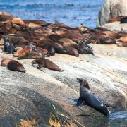 海豹岛是一座位于豪特湾(Hout Bay)上的小岛,因岛上为数众多的海豹与海鸥而闻名。开普软毛海豹乃是南部非洲的本土品种,繁殖于南非以及纳米比亚的海岸线上。它们的速度可达每小时17公里。海豹岛距离豪特湾码头只有几公里,要前往海豹岛看海豹需要乘坐游船,游人不能上岛,只能在游船上环岛观览。