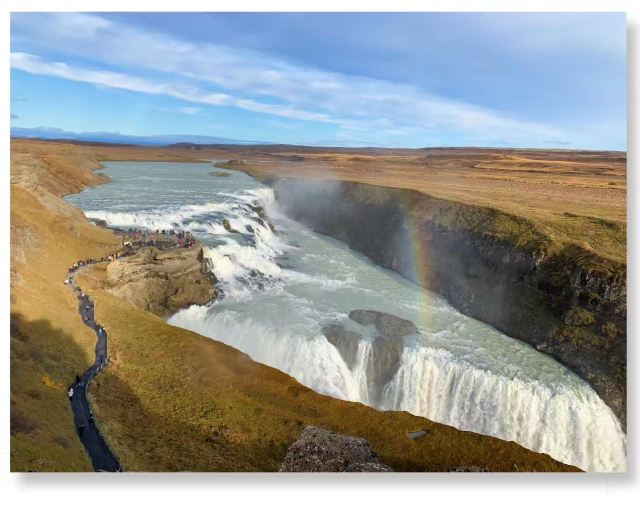 说回黄金瀑布 根据冰岛法律 土地为私家所有 所以这处瀑布原来属于私家景点 哈哈 是不是听起来有点不可思议 1975年农庄主人将它送给冰岛政府作为自然保留区 才有了我们今天的出入自由