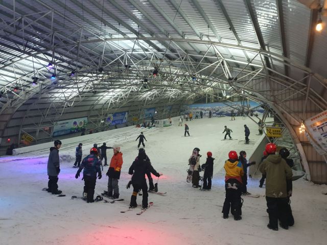 如果夏天不想待在炎热的室外,那就来到室内滑雪场,在造雪机的营造下,就像是真的置身在冬天的雪山上,即使不会滑也不用担心,只要戴上护具,就可以放心地享受滑雪的快感了。