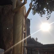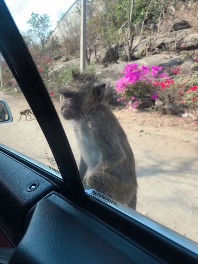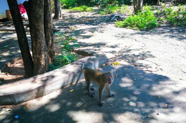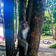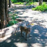 山上有很多猴子,还有一个小庙,山不高,十分钟左右可以登山山顶。登山的时候,要注意保管好自己的随身行李和一些小物件,有的猴子会来抢包;胆大的游客也可买一盘香蕉来给猴子喂食。