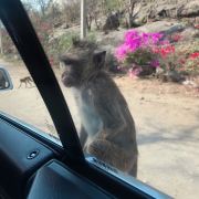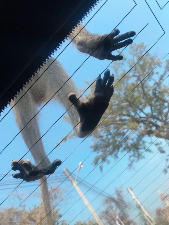 与顽皮的猴子玩耍