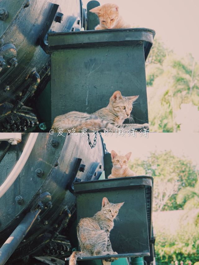 NO3、静止的火车头。除了开动的火车,车站对面还停着一辆许久未曾开动的火车头,似乎静静得在向我们诉说着过往的历史。而且来到这里你还会发现一些小惊喜哦,因为你会发现两只小猫咪!!!