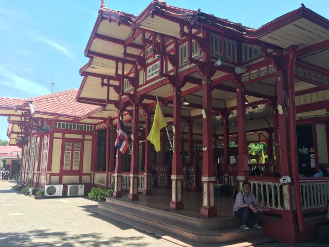 火车站的建筑风格独特而鲜明,整栋建筑完全采用柚木,红漆的梁柱和屋顶,搭配上金色的墙面,色彩艳丽,散发出浓浓的泰国风情。它是华欣较醒目的标志性建筑,同时也成为了很多小清新的年轻人前来取景拍照的地方。