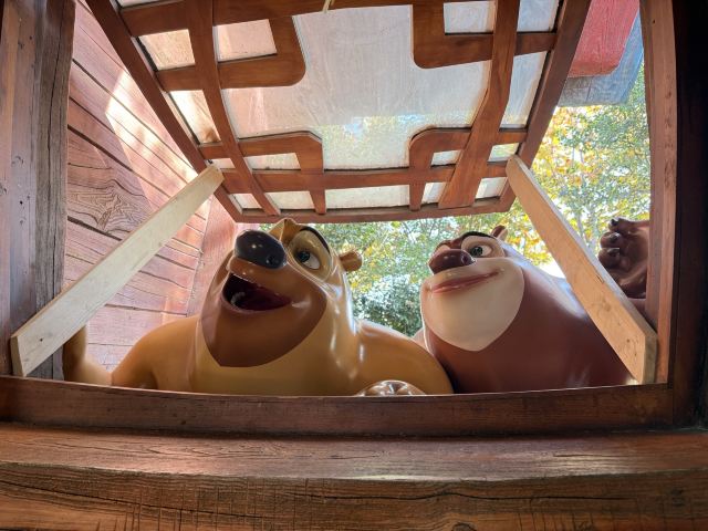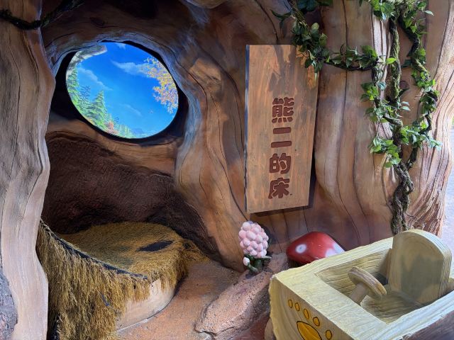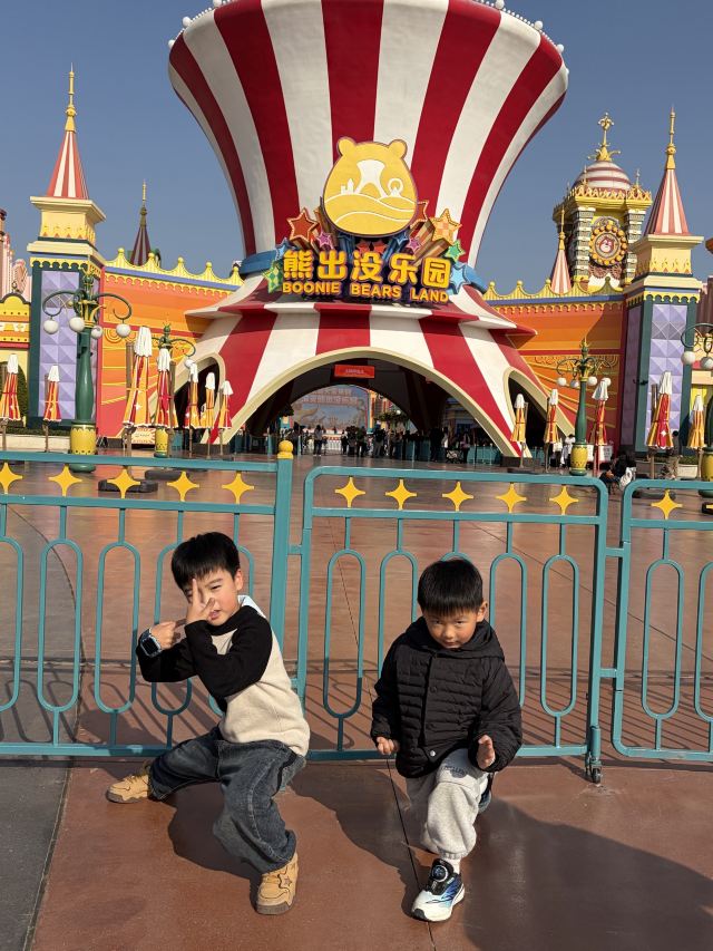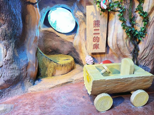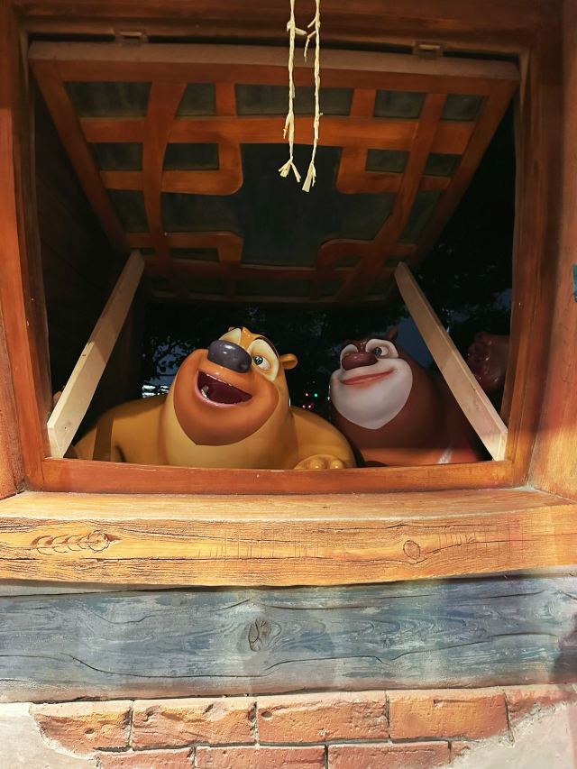 不得不誇讚一下熊出沒樂園,排隊區是有欄桿長型條板凳的,設計理念很好,但是雨天🌧️……水唧唧的……壓根也沒法坐……希望優化下,就更完美喇~